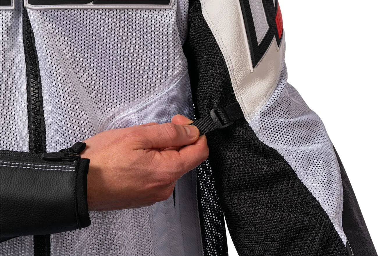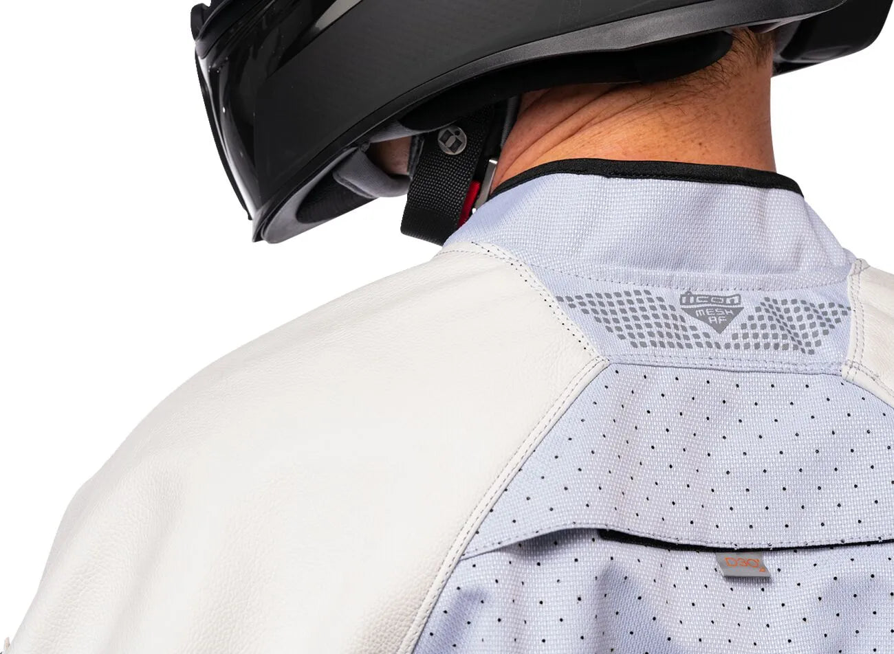 Bunda Mesh AF Leather CE je vyrobená z vycibrenej zmesi kože, sieťoviny a odolného textilu. V zóne 1 má prémiové kožené prekrytia pre väčšie krytie. Okrem toho je vybavená chráničmi proti nárazom D3O® na ramenách, lakťoch a chrbte. Sieťované panely Iron Weave zaisťujú vynikajúce prúdenie vzduchu pri jazde v horúcom počasí a hybridný rám dotvára textil 300D Poly.