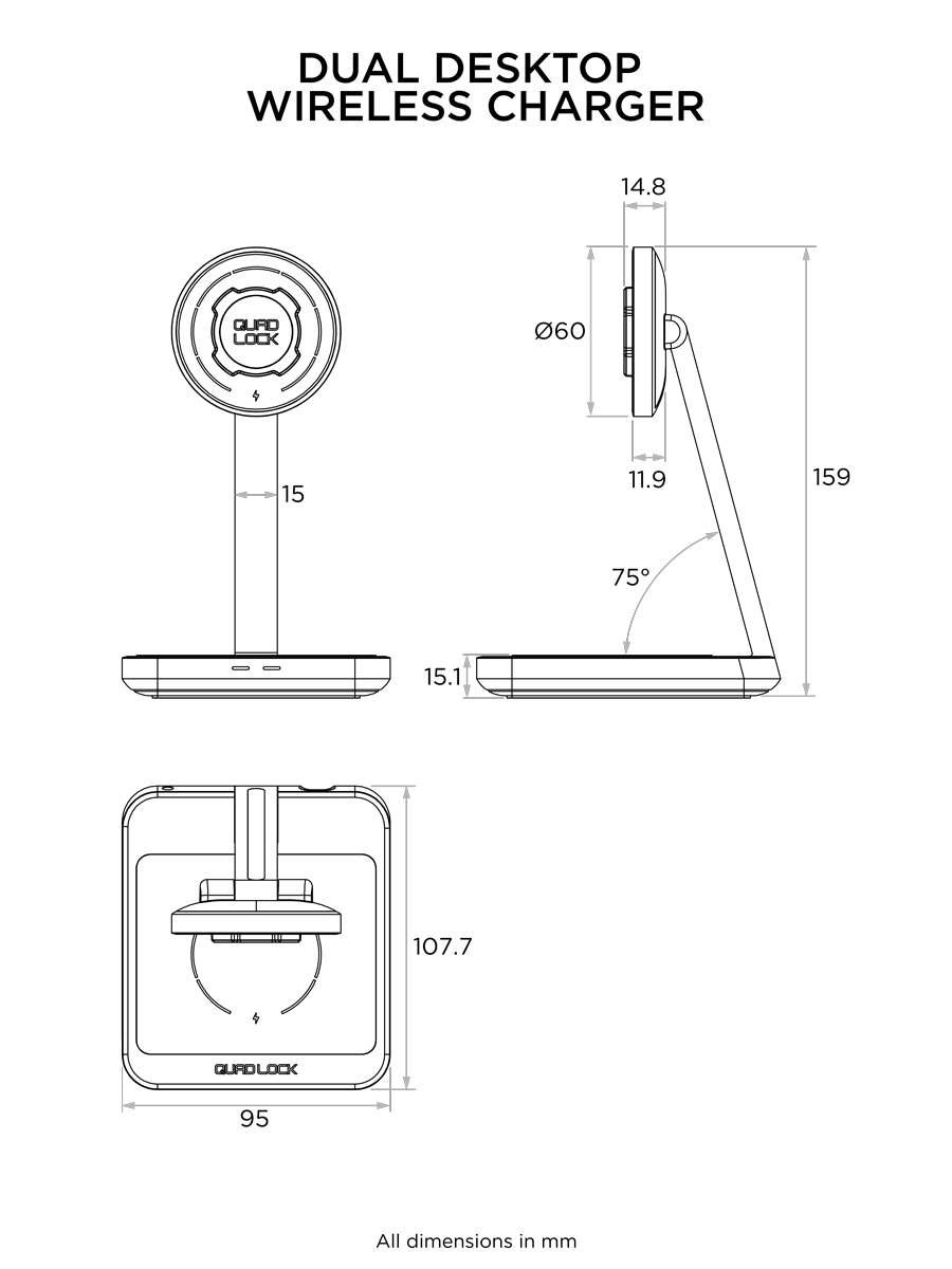• 1 x Bezdrôtová nabíjačka Quad Lock® Dual Desktop