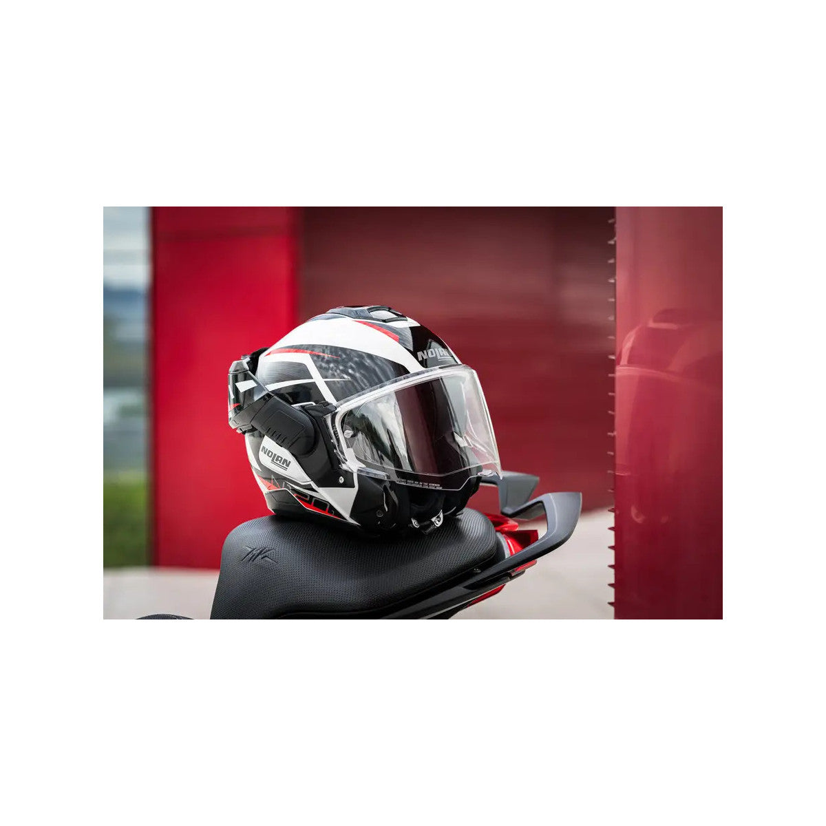 Nolan dobil svet modulárnych prilieb s exkluzívnou flip-back N120-1, prilbou, ktorá predstavuje to najlepšie v technológii, inováciách a dizajne, vytvorenej tak, aby reagovala na požiadavky trhu čoraz viac orientovaného na cross-over motocykle. S touto modulárnou prilbou s dvojitou integrálnou (P) a Jet (J) homologáciou a chráničom brady obojstranným až o 180° Nolan prelomil formu s inovatívnym konceptom technológie flip-back. Systém otvárania chrániča brady s názvom Dual Action pomocou dvojitých páčok je jednou z najvýznamnejších vlastností tohto modelu, ktorý ponúka jednoduché a plynulé otváranie a zatváranie. Tvorba grafiky a farebných možností je tiež výsledkom rozsiahleho štúdia, ktoré ponúka jedinečné odtiene ako Sabbia, Ocra a Rosso Viscerale, ako aj sofistikované kombinácie blokových farieb či inovatívne aplikácie, ktoré kombinujú farby a obtlačky. Rovnováha farieb a elegantný dizajn sú zachované pri všetkých konfiguráciách použitia. N120-1 môže byť vybavený komunikačným systémom N-Com.