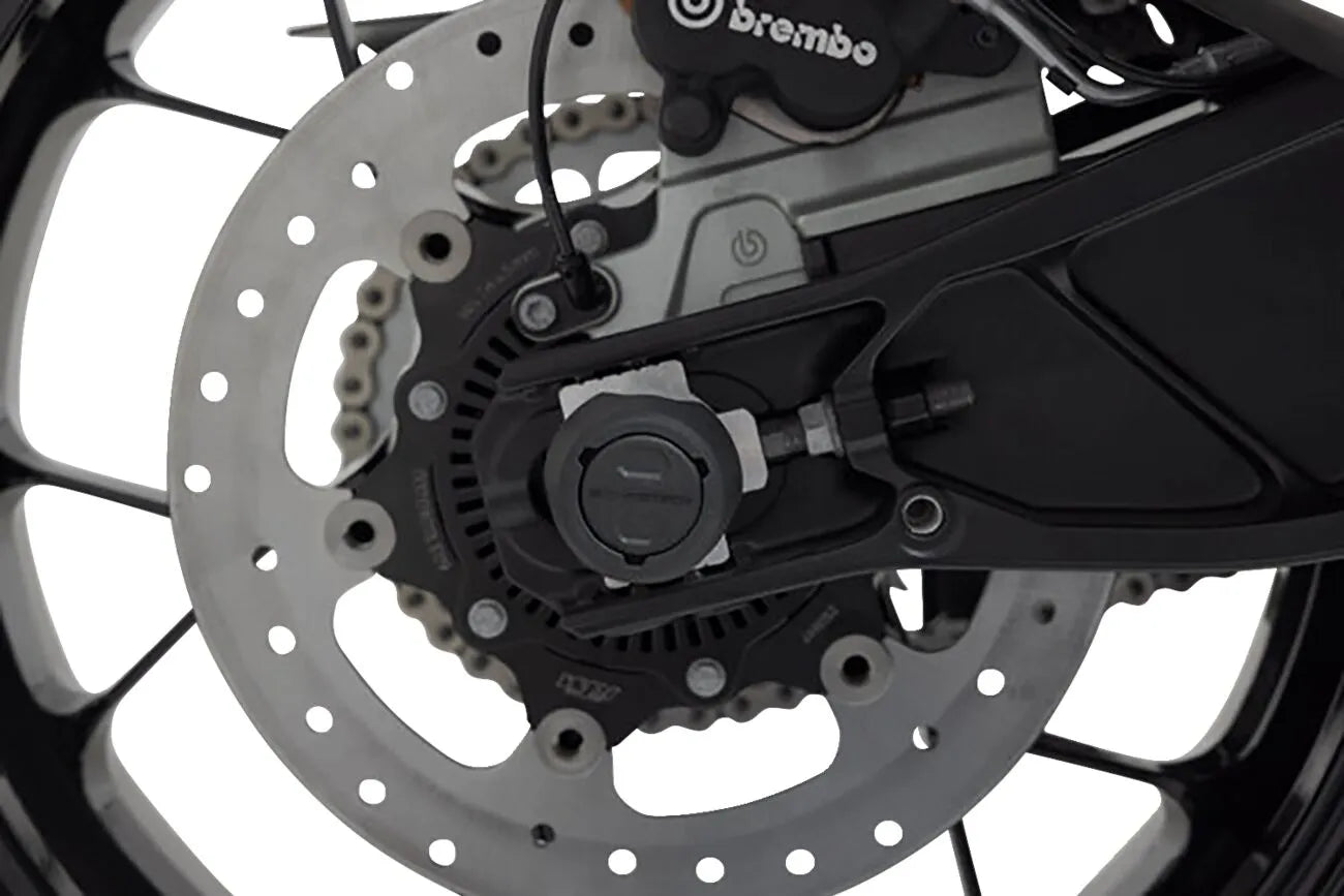 Nárazové chrániče zadnej nápravy vyrobené z oderuvzdorného plastu chránia kyvnú vidlicu pred poškodením v prípade pádu. S 30 % podielom sklenených vlákien je jadro nárazových chráničov odolné voči nárazom. Hladký povrch tiež poskytuje vynikajúce klzné vlastnosti. Leštené logo býka v červenej farbe dodáva vášmu motocyklu vizuálny šmrnc.
